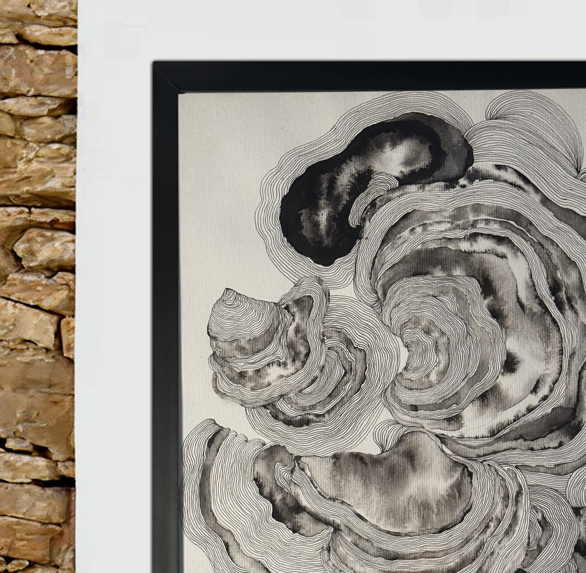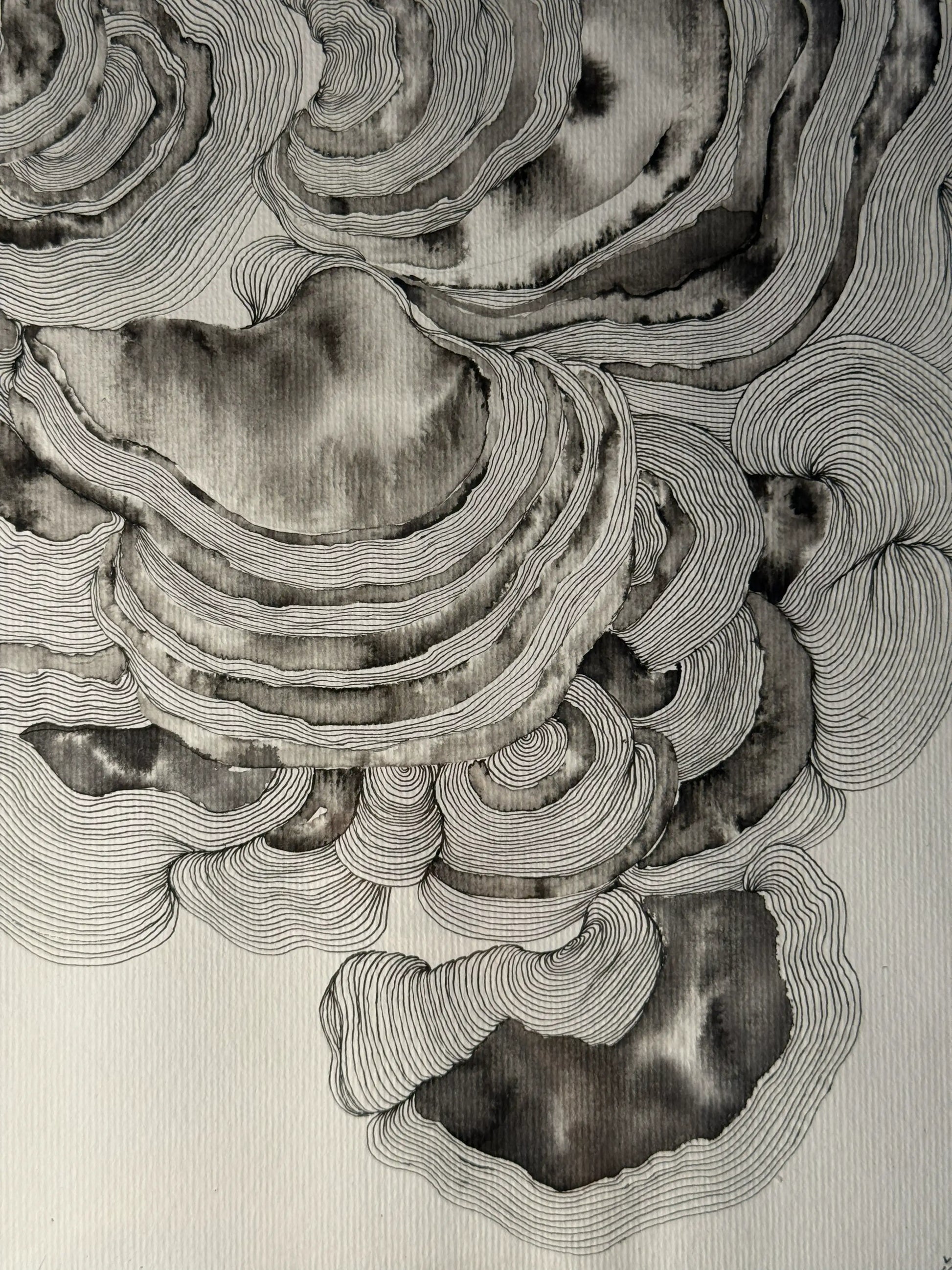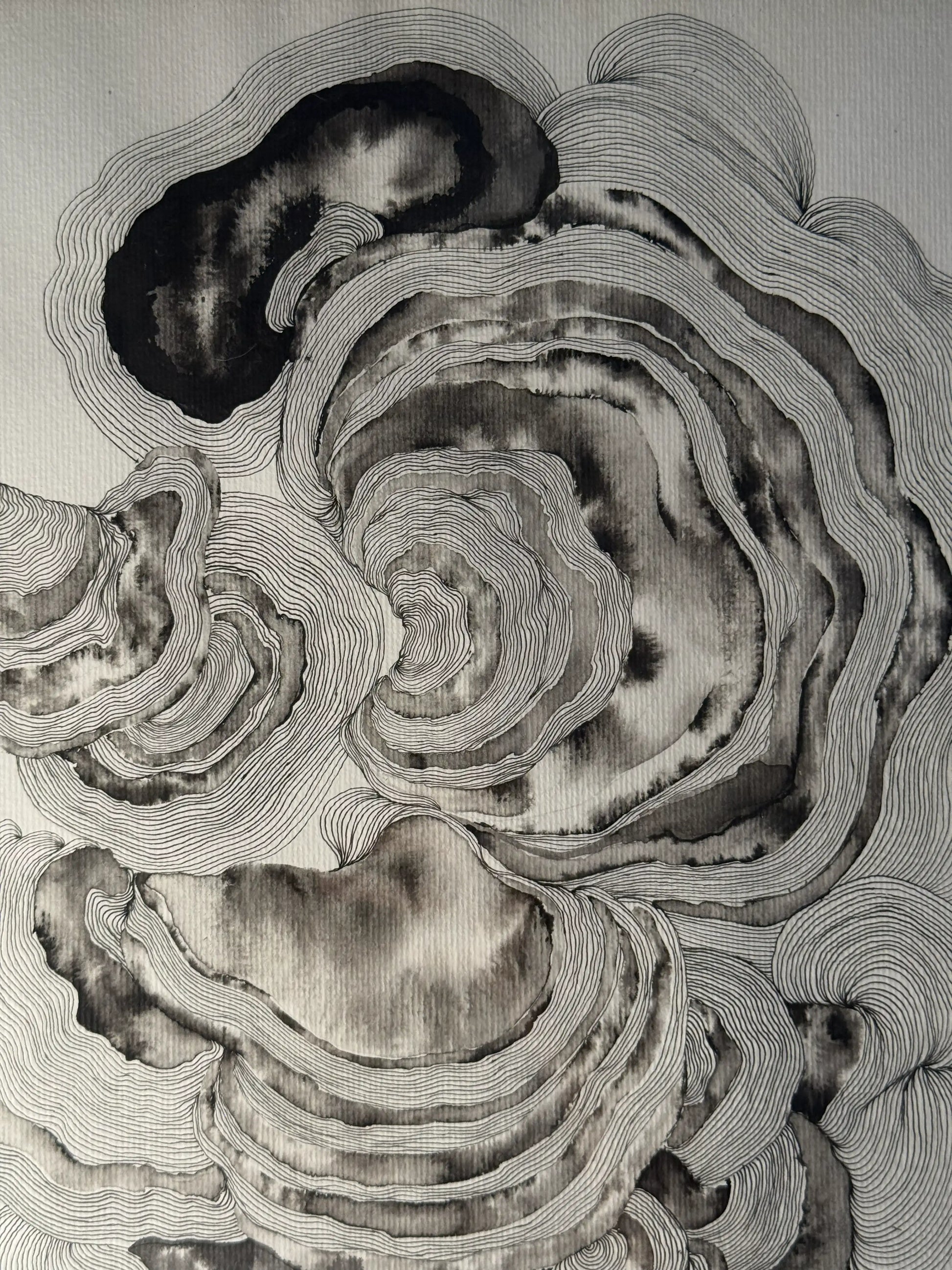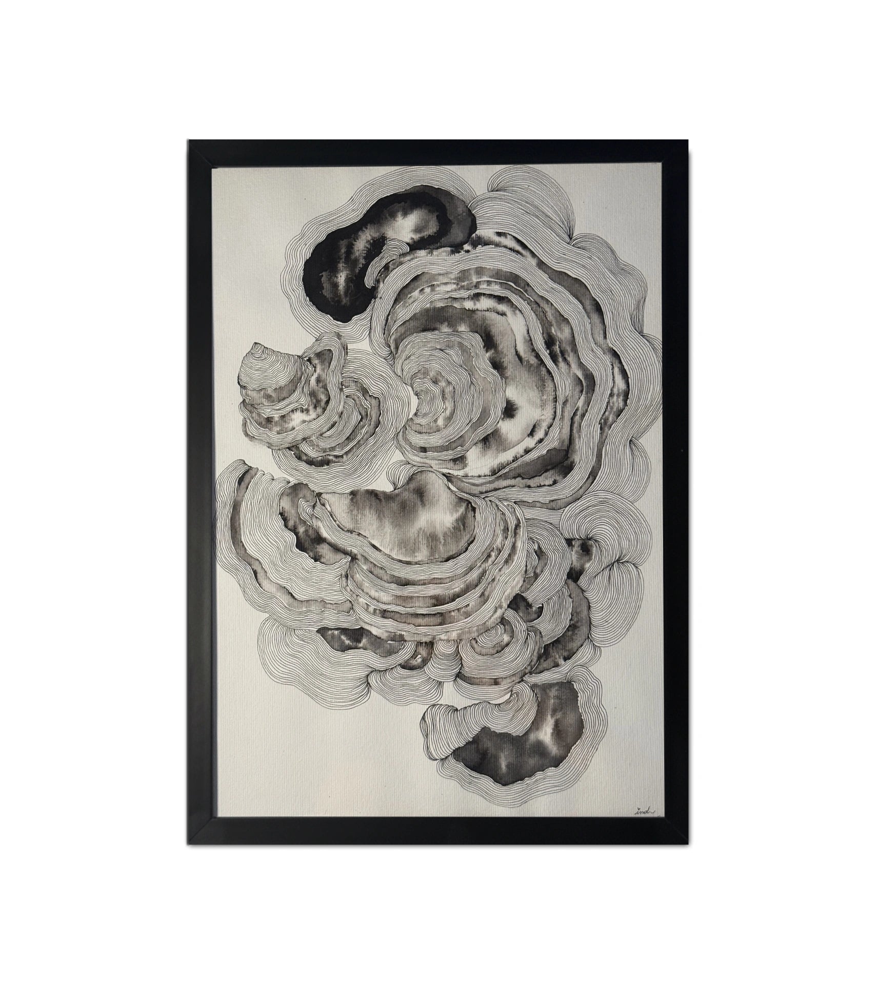 "I. ECOS DE MIM" é uma obra original em nanquim sobre papel, onde formas orgânicas se entrelaçam em um diálogo visual hipnótico. Cada linha meticulosamente traçada à mão revela camadas de profundidade, criando um movimento contemplativo que convida o observador a mergulhar em suas próprias reflexões internas.